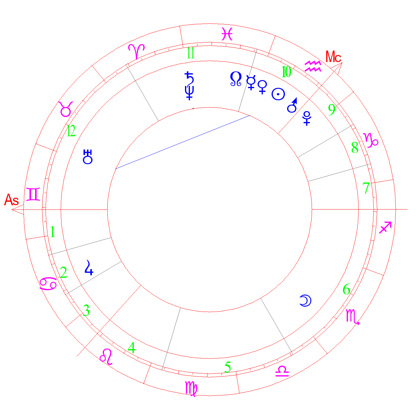 „Az erdőtüzet eloltották, a fáradt tűzoltók ujjonganak.” Készség és bátorság, amelyek szükségesek, hogy a karmai „szerencsétlenségek” vagy a gondatlanság következményeit a romboló potenciál kordában lehet tartani. Kitartás a harcban. Az életproblémák túlzása, amely kitárja az ember számára az ő igazi helyzetét és az ő bővítéséhez szolgál. Türelmetlen kihívás. Uralkodás. (Rudyar)