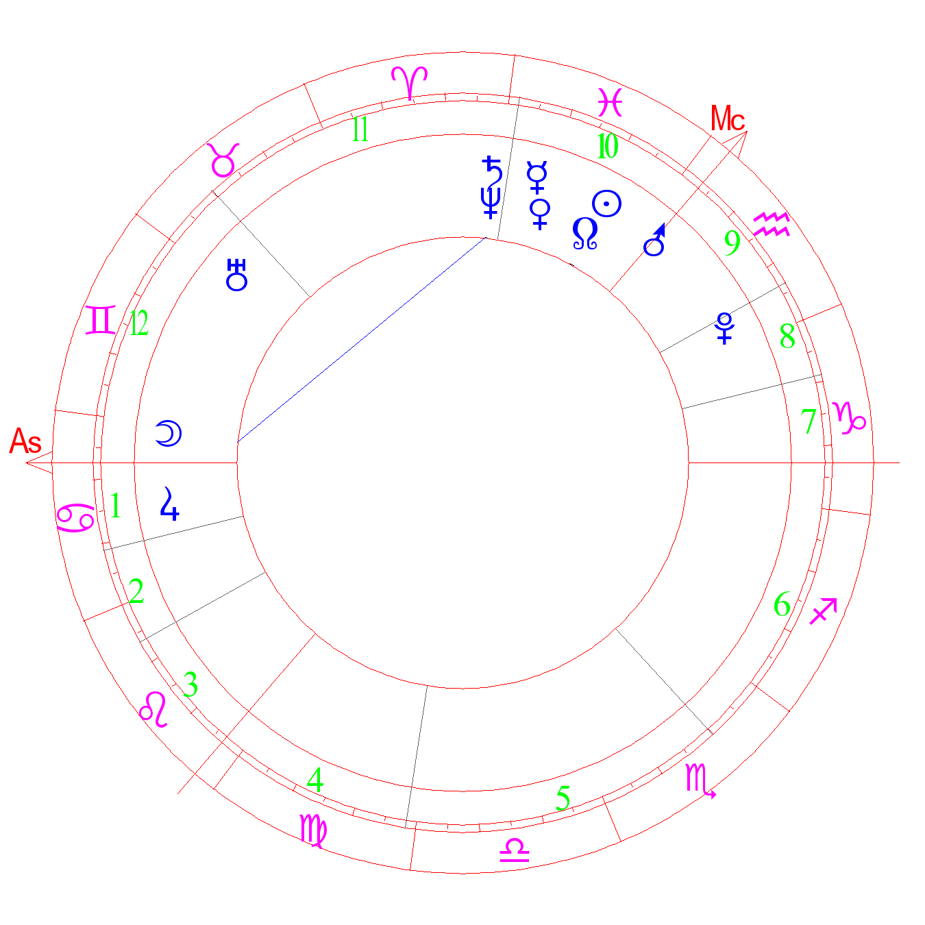’Человек с поясом в руке’. Оккультный градус, скрытые способности. Способности к науке, посредничеству. Глашатай нового. Коллективизм. Дерзость и агрессия вследствие слабости, которую человек скрывает. Неожиданная бедность и возможность в последний момент восстановить состояние. Опасность несчастья на воде (АША). Стремления, надежды, богатство. Градус Юпитера (Кефер)